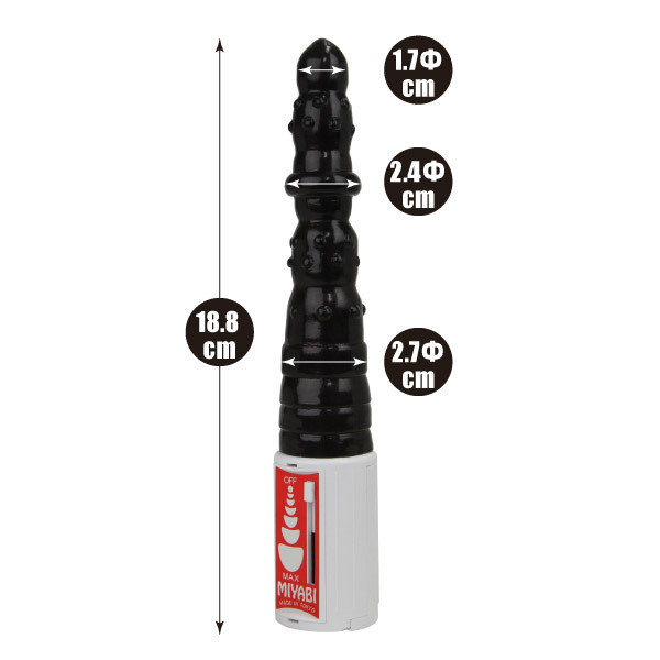 挿入部分に内蔵されたローターが強力メガ振動!しなり上々、アナル用バイブレーター。