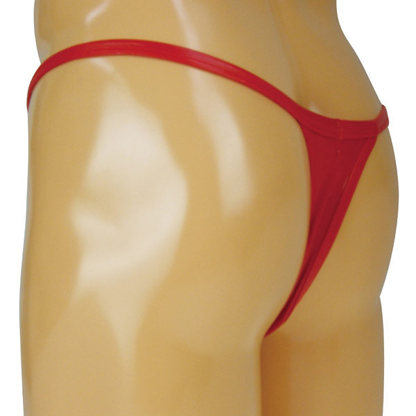ツヤのある赤エナメル素材で魅せるオシャレメンズのTバックショーツ「メンズ エナメルフロントフルシームTバック レッド」。